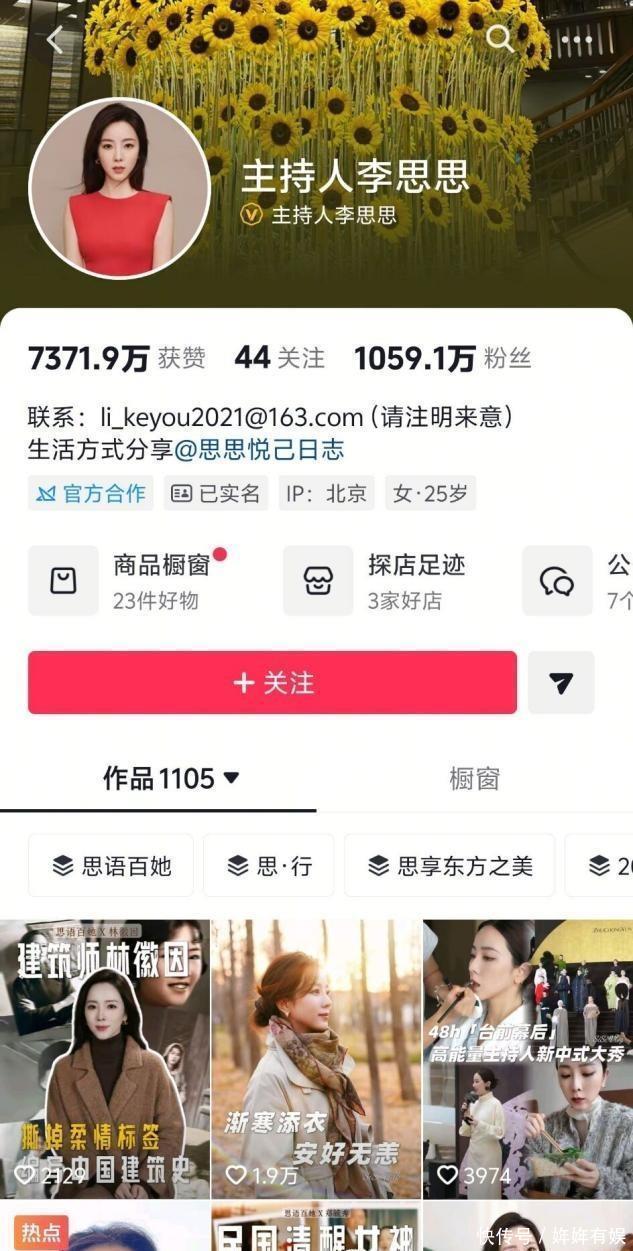 而正当大家以为李思思在央视的地位会越来越高时,她却提出了离职并表示将会开启新的挑战。 之后她便创建了自己的自媒体账号,并通过运营积累了一千多万的粉丝。